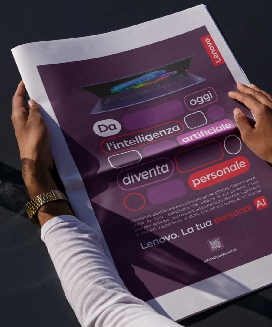 Lenovo Italia partnered with us to design the new campaign identity for their line of AI-powered PCs.As AI technology continues to advance, Lenovo’s latest products aim to make the AI revolution accessible to everyone by integrating innovative solutions and tools directly into everyday PCs and smart devices. Lenovo Italia partnered with us to design the new campaign identity for their line of AI-powered PCs.